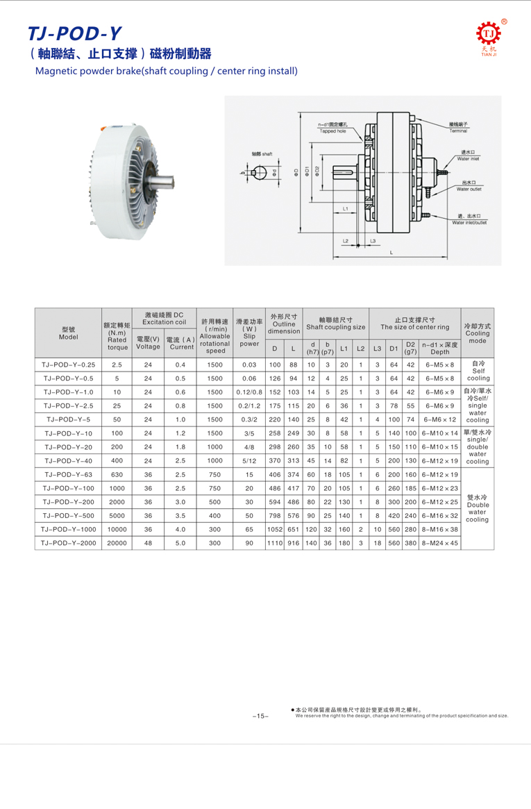 東莞天機(jī)傳動(臺灣天機(jī)牌)水冷磁粉剎車器和風(fēng)冷磁粉制動器都是工業(yè)制動器中的一種,使用的DC24V直流電壓,操作更加安全,使用簡單,維護(hù)容易。