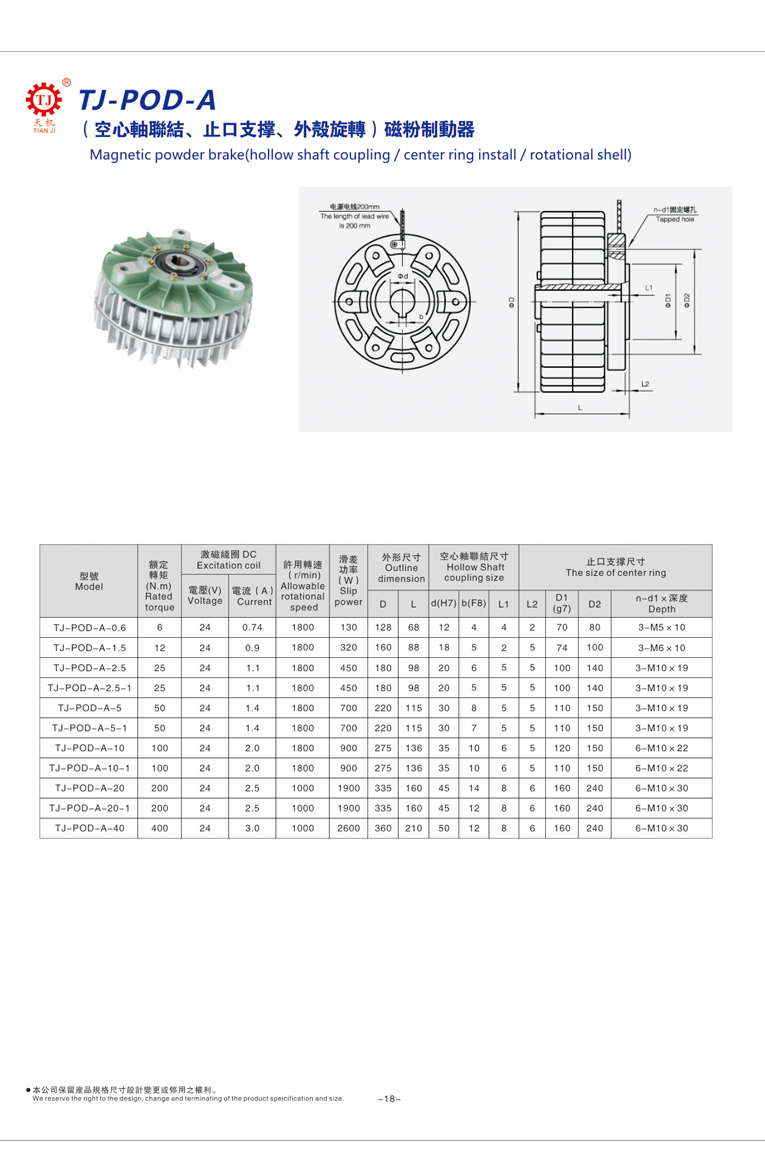 7、配套產品,POD磁粉制動器、POC磁粉離合器可與張力控制器、張力傳感器、齒輪減速電機、氣脹軸等產品配套,可需要指定配套設備請?zhí)岣嬖V我司;