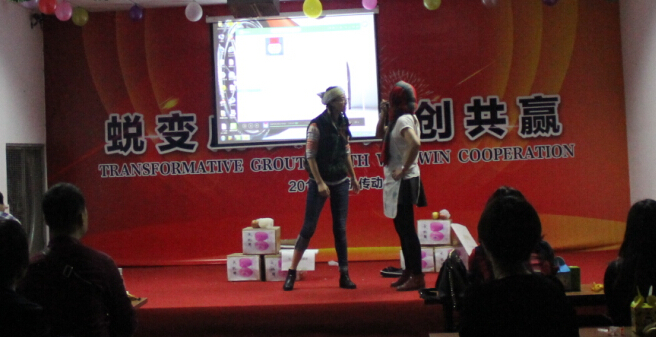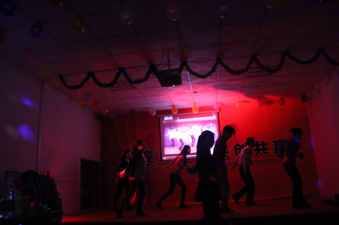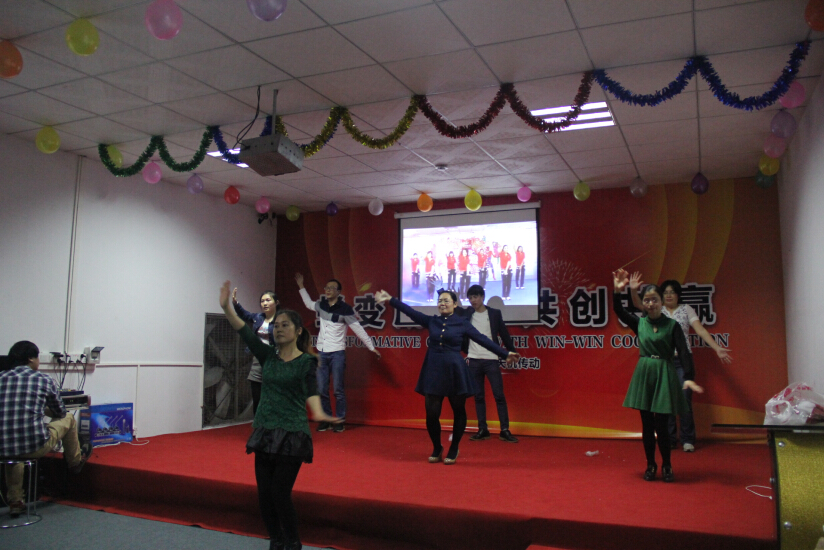 晚會(huì)中精彩節(jié)目不斷綻放,特約嘉賓書法大師陳老師給我們剖析《西游記》精彩判斷,個(gè)個(gè)聽的聚精會(huì)神;帥哥們的演唱呼聲一片一片的;美女帥哥們精心準(zhǔn)備的舞蹈拉動(dòng)著大家的熱情;一個(gè)《賣蘋果》小品將大家的熱情帶到了高潮,笑聲、掌聲不斷;游戲環(huán)節(jié)生產(chǎn)和辦公室進(jìn)行了互動(dòng),同志們的熱情不減;國(guó)際友人過年,當(dāng)然是少不了我們外貿(mào)部的同事獻(xiàn)上的英文歌曲......