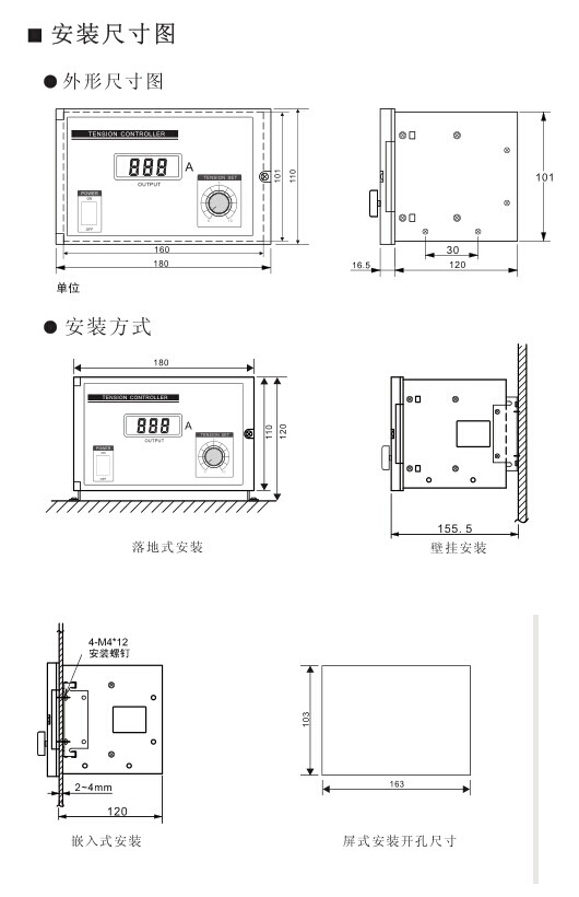 磁粉手動(dòng)張力控制器的安裝方式有落地式安裝、壁掛式安裝、面板鑲嵌式安裝三種常見(jiàn)的;
