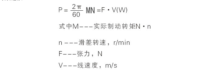 磁粉制動(dòng)器、磁粉離合器的選型一般以所需傳遞最大轉(zhuǎn)矩為依據(jù)來(lái)選定,并注意保證實(shí)際使用的滑差功率,應(yīng)小于技術(shù)參數(shù)的允許滑差功率,余量大點(diǎn)更能延長(zhǎng)使用壽命。計(jì)算公式: