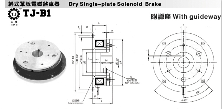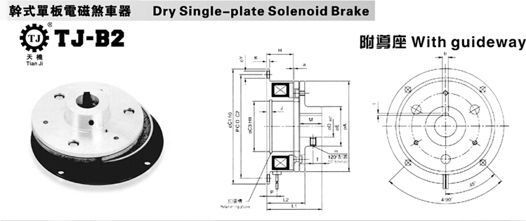 東莞天機傳動的電磁制動器(電磁剎車器)有三款分別為:干式單板電磁制動器(TJ-B)、干式單板電磁制動器帶導(dǎo)座(TJ-B1)、干式單板電磁制動器服軸承導(dǎo)座(TJ-B2)
