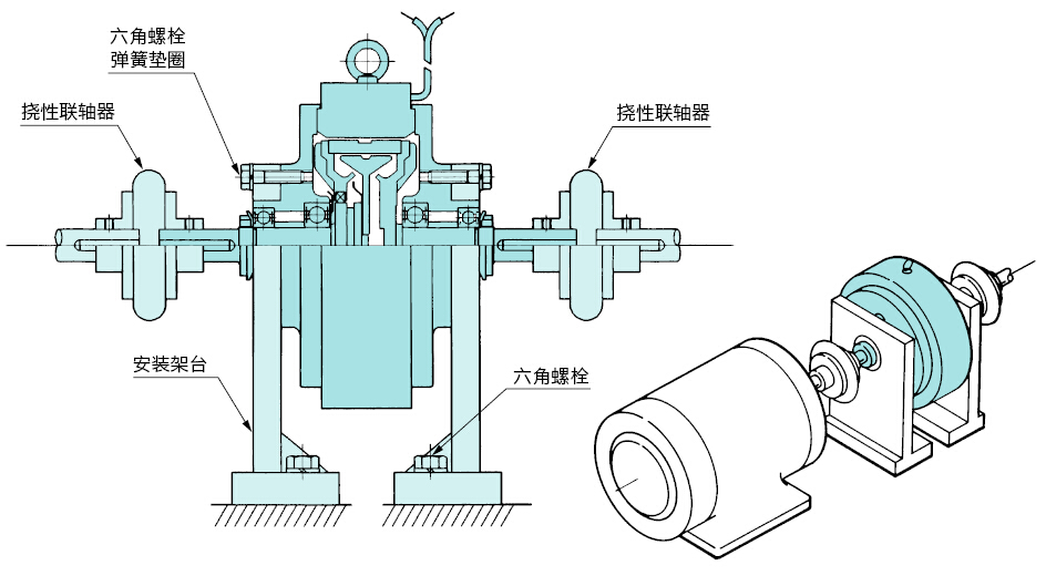 伸出軸型磁粉離合器安裝示例圖